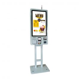 Kiosco Transicional Capacitivo SAT KT32AC I5 con pantalla táctil de 32" y procesador Intel Core i5. Ideal para autoservicio, pagos, turnos y atención al cliente con diseño moderno, potente y eficiente.